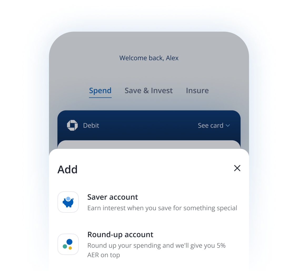 Log in to the Chase app, go to 'Save & Invest', tap 'Add+' and choose 'Round-up'.